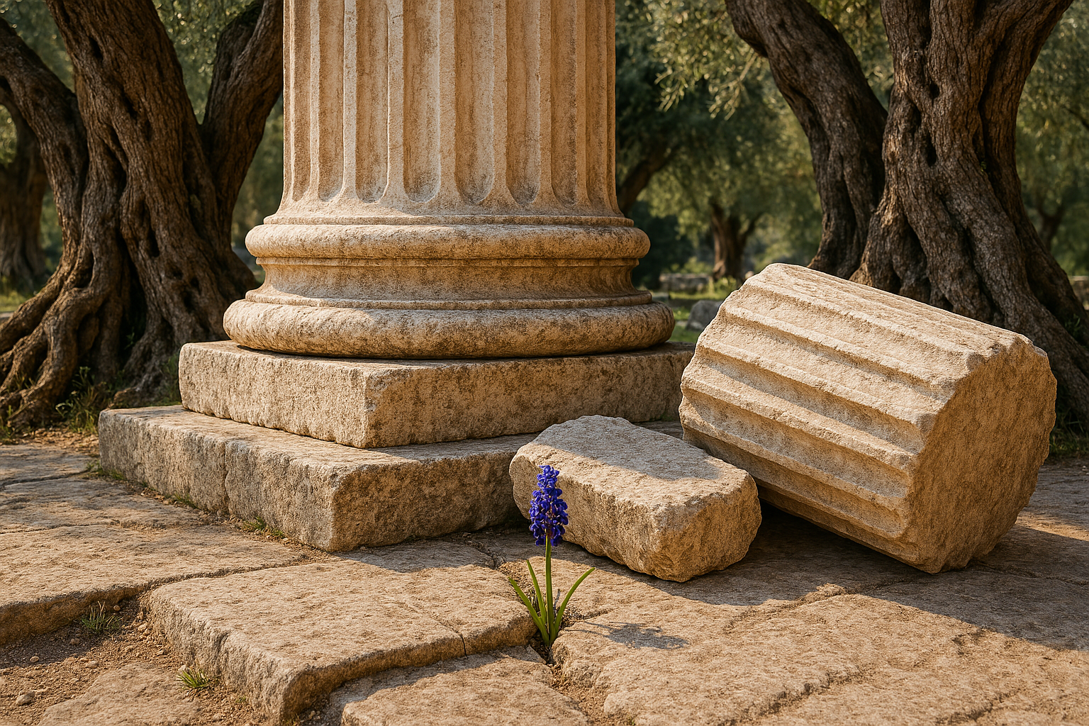 Is lost between the ancient olive trees.