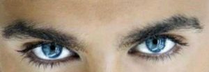 ..His ocean blueish blinking squeezing eyes