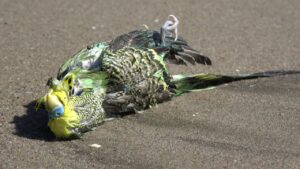 Your budgy’s cage—just head and feathers spurned.