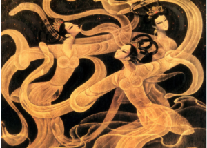 The glossy sounds of maids and Buddhas rose