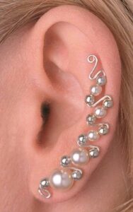 By earlobes’ curls.  The breeze plays clear beside