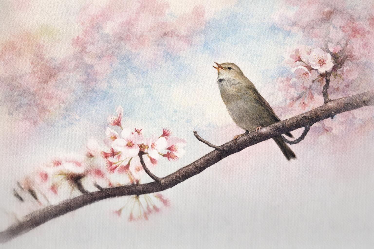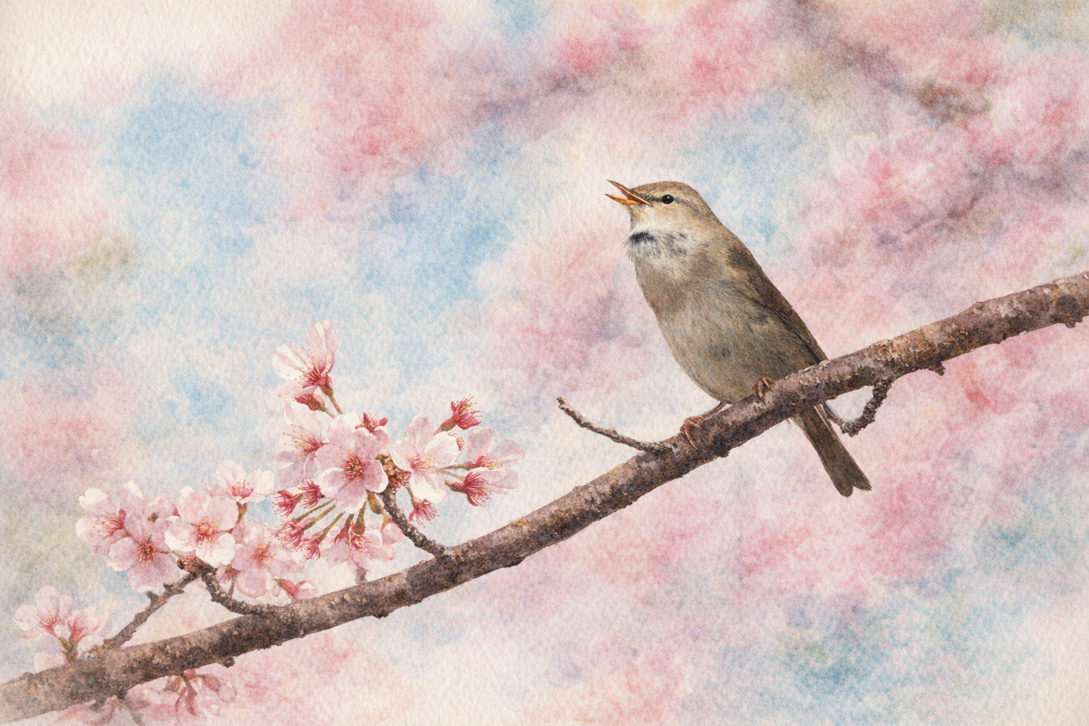 [Yes, I know.  I know the blossoms are not camellias.  The plum tree is not a camellia bush.  However, the uguisu/Japanese warbler is a uguisu.]