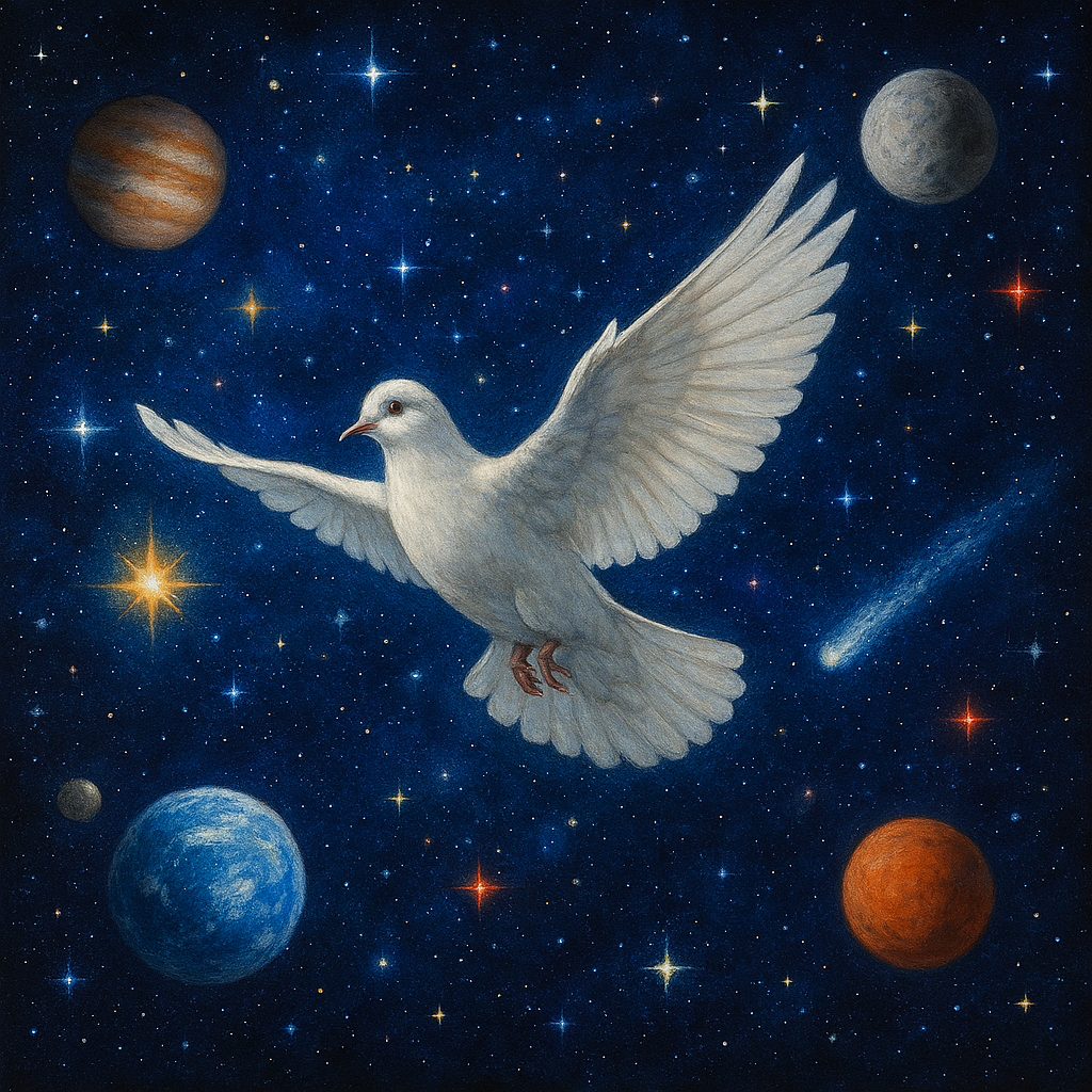 Across the cosmos, not alone doves’ skies.