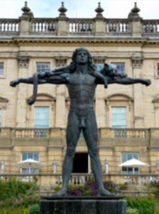 And animals around his shouldered arms
