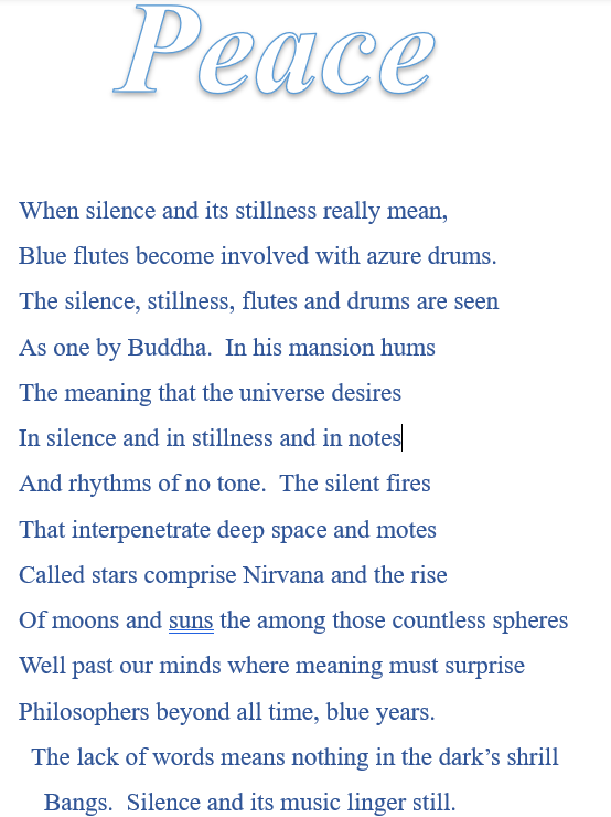 [The fancy programs used to create this sonnet package are not fancy enough to let me do it my way. They refuse to cooperate. I prefer the word “musics” in the last line instead of “music.”