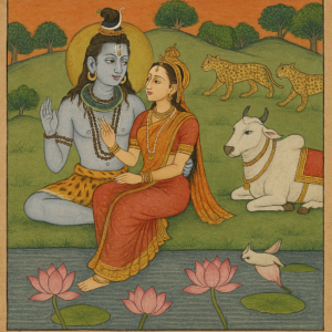The warrior, Mahadeva, holds his love