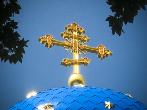 In death. That strongly blue and gold-starred dome,